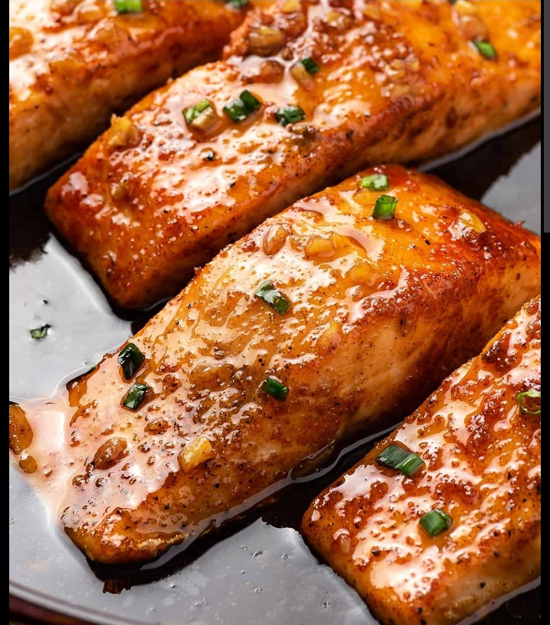 Honey Glazed Salmon — Oven-baked salmon coated in a sweet, sticky honey glaze with a subtle savoury balance.