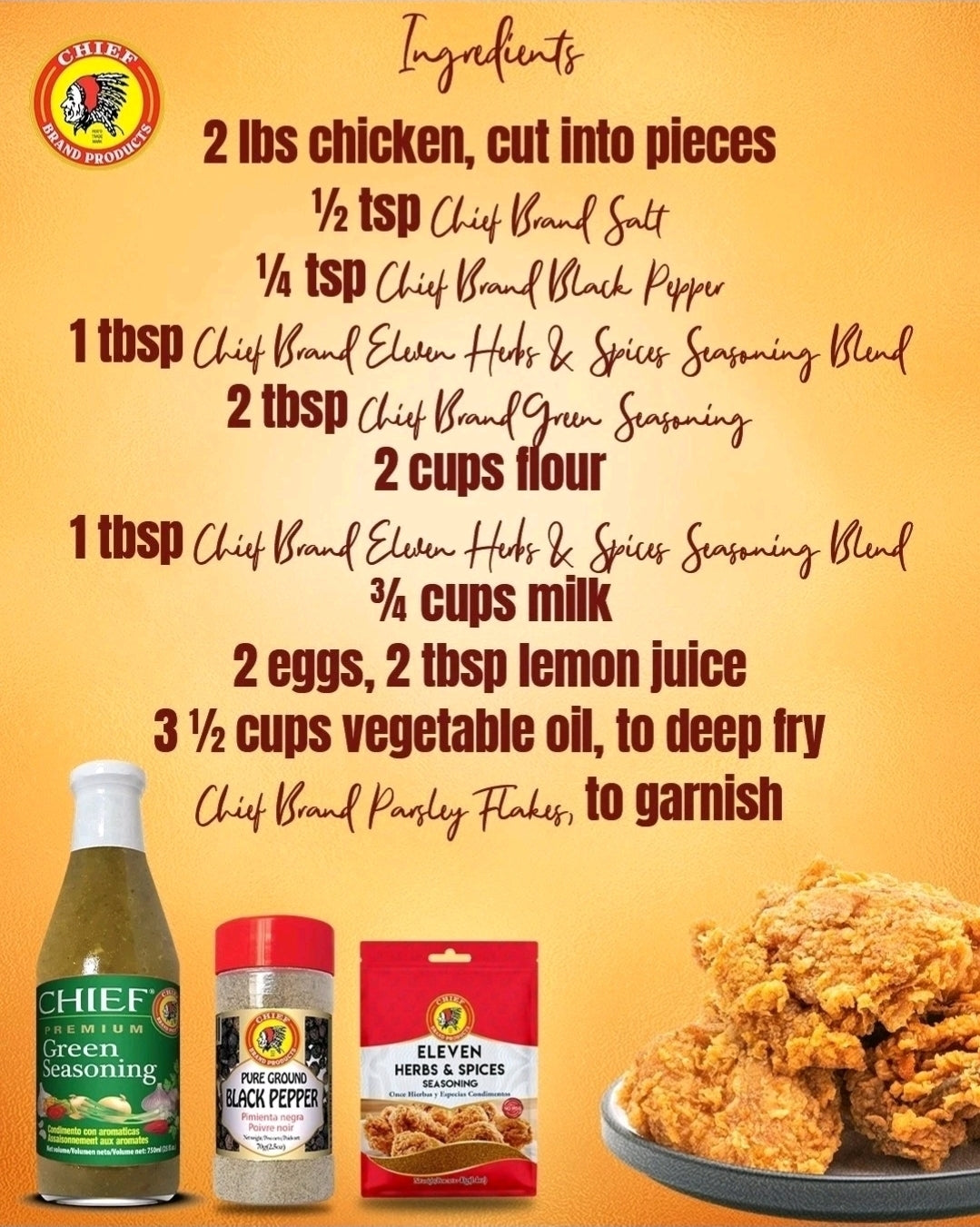 Chief’s perfect blend of 11 Herbs & Spices is simply brilliant as a marinade for chicken, meats and even seafood. The options are endless in your kitchen with the power of Chief’s eleven herbs and spices at your finger tips. Say hello to the tastiest Fried Chicken you ever had. Season your Chicken parts with it and sprinkle some in your flour batter and taste the deliciousness yourself.